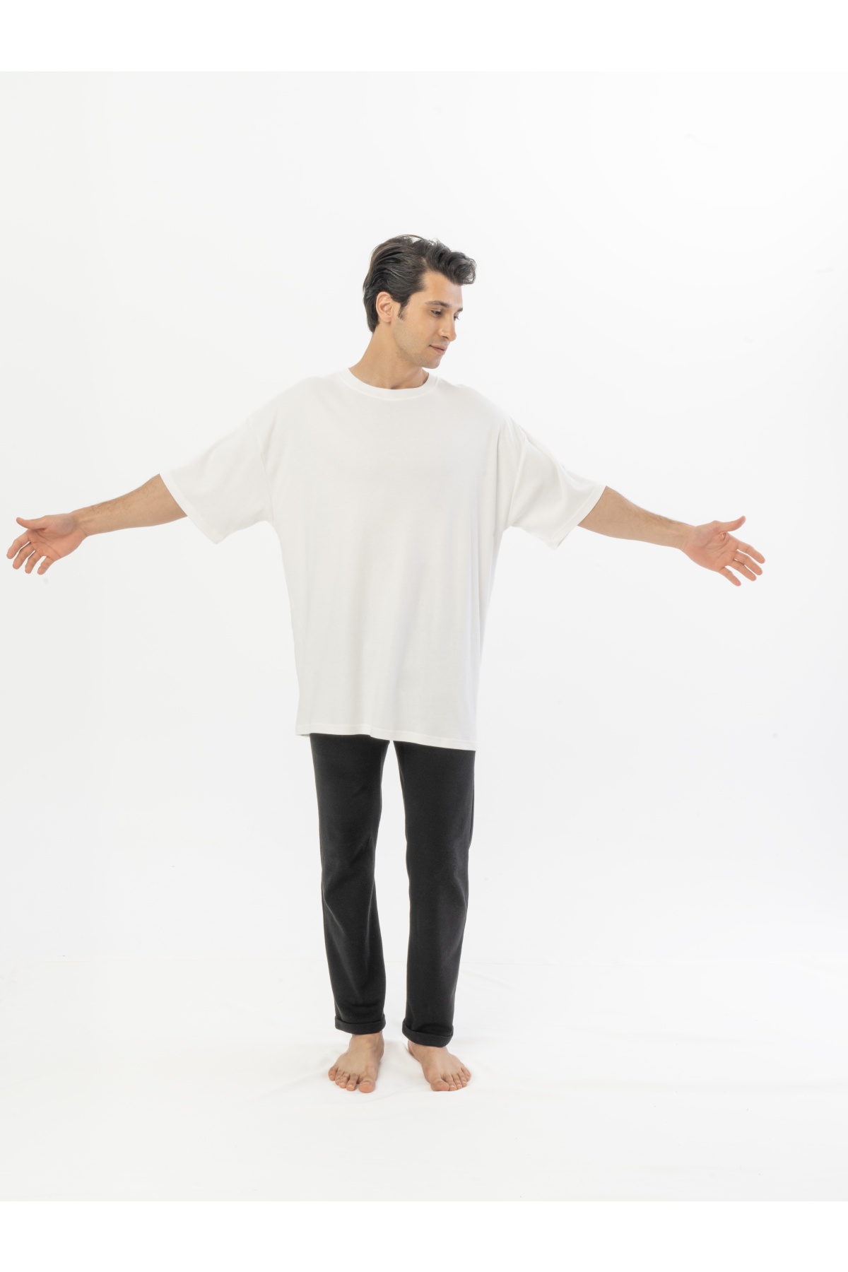The oversized custom cut Eleven combines comfort with modern design. Its spacious and loose fit ensures all-day comfort, while its stylish details add a unique touch to your style. Its soft and breathable fabric makes it an ideal choice for every season. Whether for daily outfits or special occasions, this t-shirt will become a favorite in your wardrobe, poised to be one of its standout pieces.
