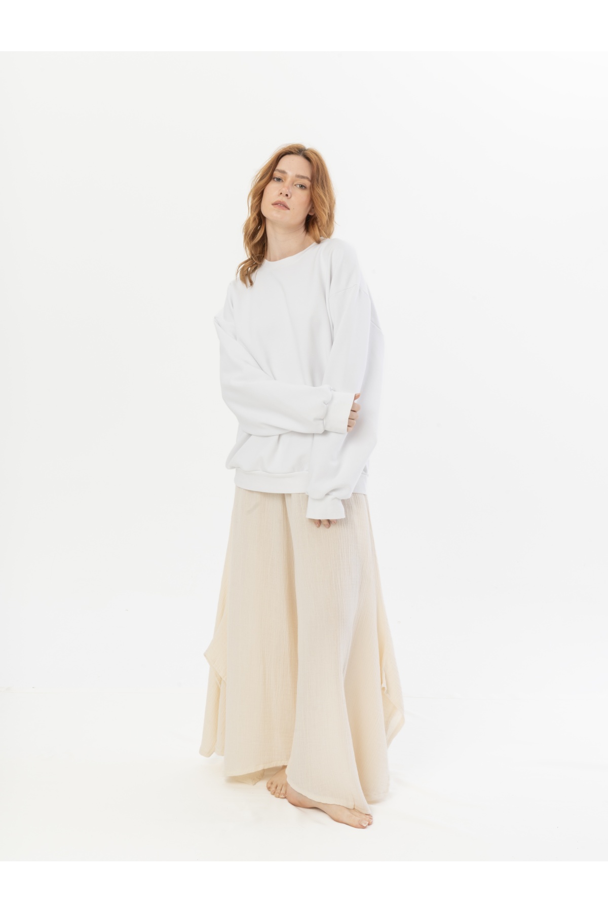 Sweatin is made from 100% cotton fabric, prioritizing your comfort with its soft texture and breathable structure. This stylish and comfortable sweatin, ideal for daily wear, will become an essential part of your wardrobe year-round.
