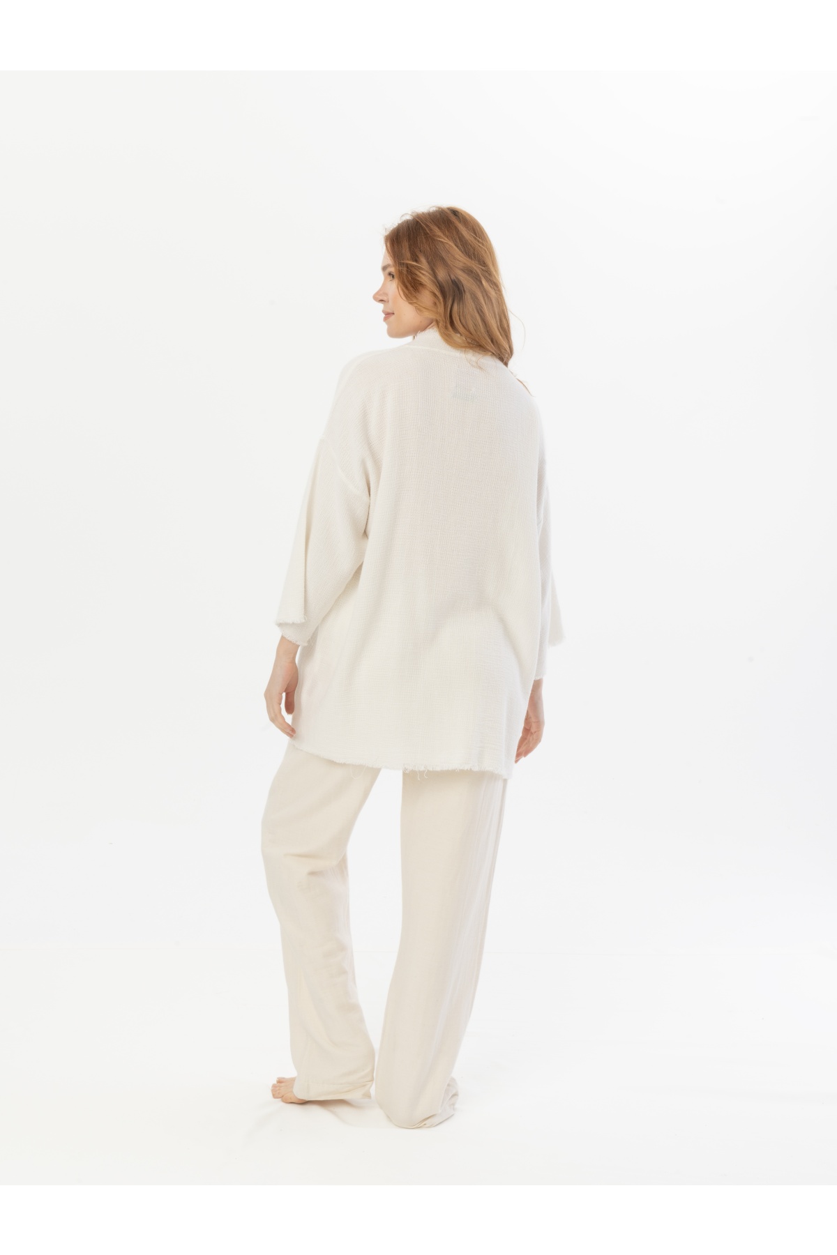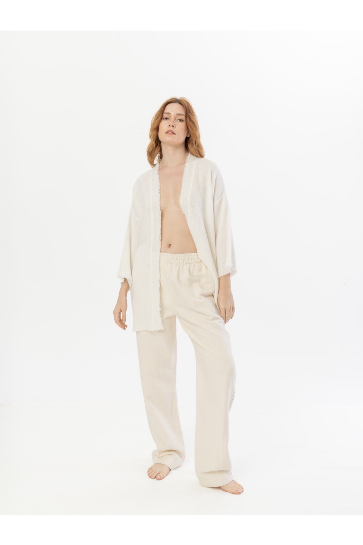 Our Hakama kimono, made from linen fabric, is a perfect choice for both day and night wear. Its light and breathable linen texture keeps you cool on hot summer days, while its elegant design highlights your style in any setting. Ideal for adding elegance to your everyday outfits or for a refined touch at evening events, this kimono will become an indispensable piece in your wardrobe.